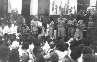 בצילום: מסיבת סוכות בביה"ס העברי בבנגזי בשיתוף החיילים הארצישראליים