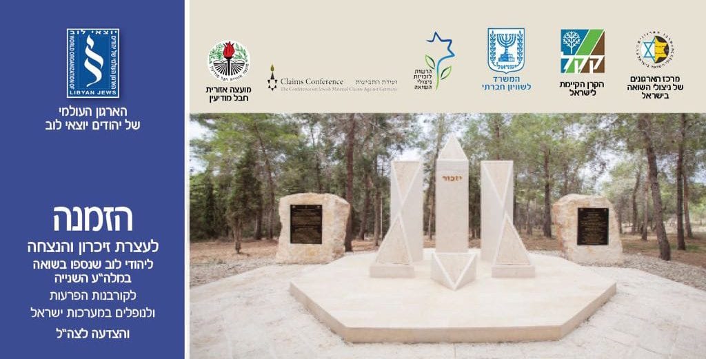 מוזמנים לחלוק כבוד ליהודי לוב שנספו בשואה, לקרבנות הפרעות, לנופלים במערכות ישראל, והצדעה לצהל. יום שני, 16 אפריל, בשעה 16:30 באנדרטה המרכזית ביער יהודי לוב